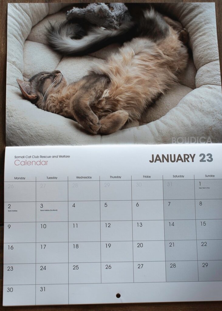 Zowel Boudica als Lilibet hebben een prijs in een fotowedstrijd ‘Kat in de zon’ gewonnen. Lilibet met een jeugdfoto gemaakt door Angela de Reuver. Zusje Boudica is het januarimeisje van de kalender van een Britse Somaliclub.