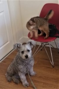 Polly was ook mee naar de dierenarts. Ze gaat eigenlijk altijd mee voor de gezelligheid. Ze is dan ook niet onderzocht maar zij heeft nu ook een vachtprobleempje. Weer wat jeuk en dan maakt ze korte metten met haar krullen. Meestal is de oorzaak bij honden een vlo of anaalklierprobleem. Die kan ik bij haar echt niet vinden. Volgens mij zijn alle dieren 100% vlovrij.