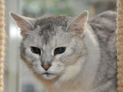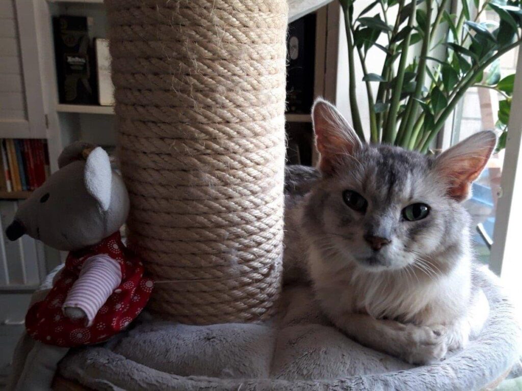 Bijzonderheden: we doen hem geen plezier wanneer we niezen of hoesten wanneer hij bij ons op schoot ligt. Dan spuit hij weg.
