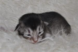 Vandaag zijn Elfies kittens, het V-nest, al weer twee weken oud. Moeder en kinderen doen het fantastisch. De kittens groeien als kool en mama Elfie is erg tevreden en gelukkig. Ondanks de omstandigheden. Kort voor de bevalling heeft ze meerdere ernstige aanvaringen met Bashiir en Sher gehad. Zodanig dat ik haar apart van de andere katten houd. Dit is voor ons allemaal een ongebruikelijke situatie. Ze zijn hier gewend dat de andere katten ook op kraambezoek komen. Daarbij denk ik dat moederpoezen instinctief niet op dezelfde etage waar hun nest is naar de kattenbak willen. Die vrijheid heeft onze lieve meid nu dus helaas niet. Ik houd haar (grote kattenbak) extra schoon en Elfie zelf doet er ook alles aan om geen luchtjes te verspreiden: alles wordt uiterst grondig begraven.