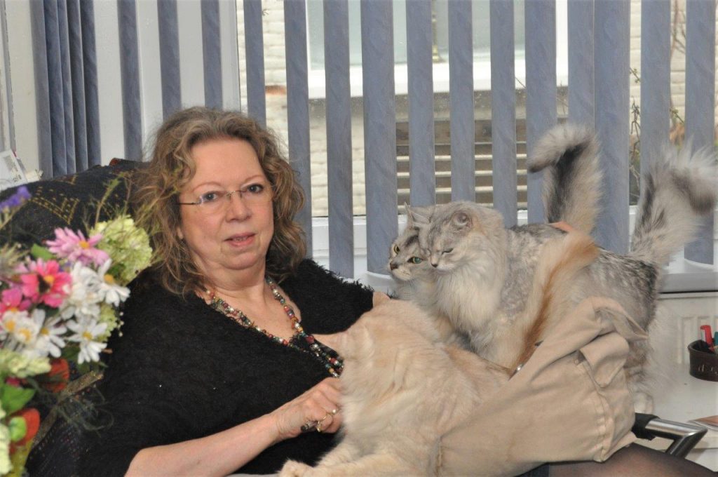 Onze dieren zijn gewend dat ik bijna altijd thuis ben. Deze foto heeft Huibert gemaakt toen ik net lekker was gaan zitten en de katten zich al meldden voor hun knuffel. Ik was namelijk wel een heel uur weggeweest… Jack komt gewoonlijk als eerste bij me op schoot en mocht daar al een ander zijn, dan stapt hij er gewoon bij. Shabanou en Maverick zijn wat bescheidener maar zorgen ook dat ze wel aan hun trekken komen.