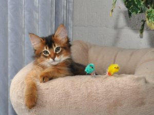 Gisteravond vermoedde ik het al; de lieve Umione is al weer aan het krols worden. Ze heeft een voor haar zeer ongebruikelijke korte rustperiode gehad. We zijn nog niet uitgedacht over de andere mogelijkheden om haar een keer een nestje te laten krijgen of castratie dus we hebben voor nu voor Suprelorin gekozen. Zo krijgt ze een heerlijk lange hormonale rustperiode en daarna zien we wel of we haar nestje nog een kans geven. Dit is voor ons voor het eerst dat een poes die nog geen nest heeft gehad dit middel krijgt. Eerder durfde ik dit niet aan vanuit de gedachte dat een eerste nest op latere leeftijd krijgen, vragen was om complicaties met de zwangerschap en/of bevalling. Dat is ook zo maar ik denk dat de leeftijd niet de oorzaak van de complicaties was maar het pilgebruik en/of de frequente krolsheden.