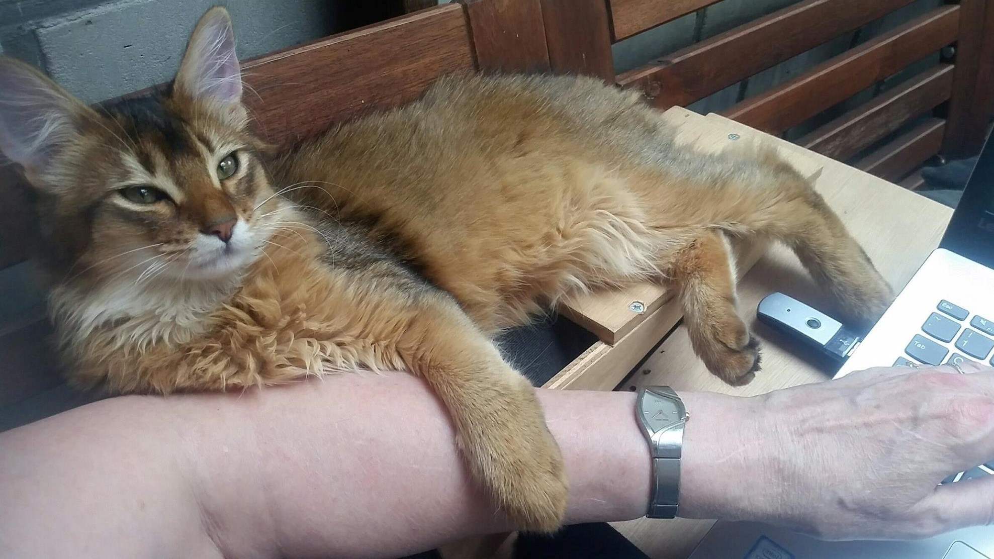 Met broertje Indy aka Urian gaat het ook maar wens. Hij is al aardig thuis. Deze week kwam de kattentrimster bij Ellen aan huis om hun vachten onder handen te nemen. Op Pip na zijn het allemaal Maine Coons. Ik wil niemand het brood uit de mond stoten maar het gebruik van rijstzetmeel kan een boel narigheid voorkomen. Maar hij heeft zich uitstekend geamuseerd. Op deze foto heeft hij het zich makkelijk gemaakt op de ingeklapte behandeltafel van de trimster.