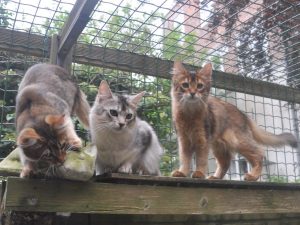 Ik heb mijn huiswerk 😉 ook weer gedaan: twee stukjes geschreven voor de rasclubs. Iets voor ABY2000 voor hun themanummer over Overlijden (dat heeft me wel een traantje gekost) en iets over het geven van flesvoeding aan kittens. Daar heb ik mede dankzij deze kittens aardig wat ervaring mee. Dat is een heel dankbaar klusje. De kittens van Elfie waren al op op zo’n leuke manier aanhankelijk maar deze zijn helemaal de kers op de taart. Wat is er leuker dan kittens over de vloer die slippend naar je toe komen rennen wanneer je ze roept?