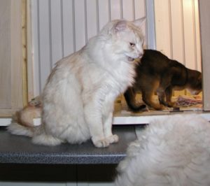 Ik was een beetje zielig, steeds maar ziek etc. en Huibert heeft me opgevrolijkt met een hele goede flitser voor bij mijn digitale Olympus. Hij is werkelijk geweldig. Ik moet natuurlijk de finesses nog uitpuzzelen maar het is een verademing om eens ogen van onze katten te zien zonder dat ze op vampiers lijken of met twee verstralers in hun kopje rondlopen. Zelfs Sijn is helemaal gelukkig. Het lieve kind had zo’n hekel aan het licht van de ingebouwde flits dat ze bij voorbaat al haar ogen dichtdeed wanneer ze maar het toestel zag. Ik ga hier dus een heleboel foto’s plaatsen.