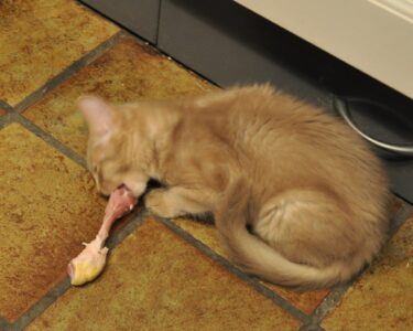 De foto van The Fonz met het kipkluifje is weggevallen. Deze foto van een andere Silfescian laat zien hoe katten eraan kunnen kluiven.