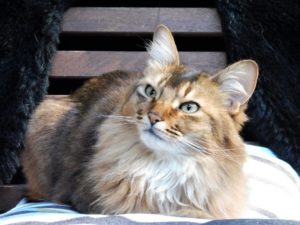 Ik ben dolgelukkig dat ik de titel van deze blog in de verleden tijd kan schrijven! Wat was het zaterdagavond een verschrikking. Om een uur of tien hoorde ik boven een vreemd geluid en ging ik direct op onderzoek uit. Mogelijk was er een confrontatie met een andere kat op het dakterras. Eerder die dag was de buurkat waar in een eerdere blog ‘New kit on the block‘ over was geschreven, weer opgedoken. We hadden hem al maandenlang niet meer gezien en aangezien de muren rondom het pand van deze buren erg hoog zijn, was er ook geen communicatie meer met zijn mensen geweest. We wisten al wel dat hij een speciaaltje was, achterblijvertje in het nest en erg langzaam in zijn ontwikkeling geweest, en door zijn wat afwijkende gedrag gaan alle alarmbellen bij vooral Sher af. Andere katten in ons blok hebben namelijk niet dit effect op haar.