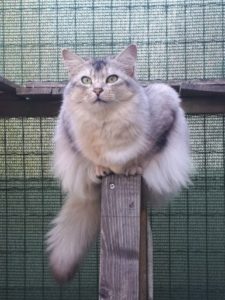 Vrij buiten was dus geen optie meer . Ons tweetal was gewend om na mijn werk een uurtje, met een belletje om vanwege de vogels, buiten te mogen. Sjimmie was een voormalige boerderijkat en een kat die vrijheid gewend is, wordt vaak doodongelukkig wanneer die vrijheid wordt afgenomen dus Huibert brak zijn hoofd over een oplossing. Die vond hij: een kattenvolière!