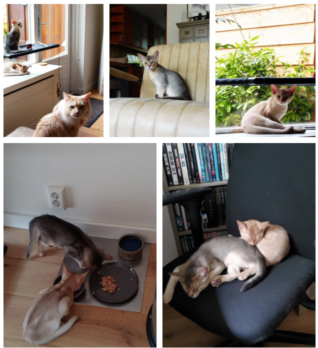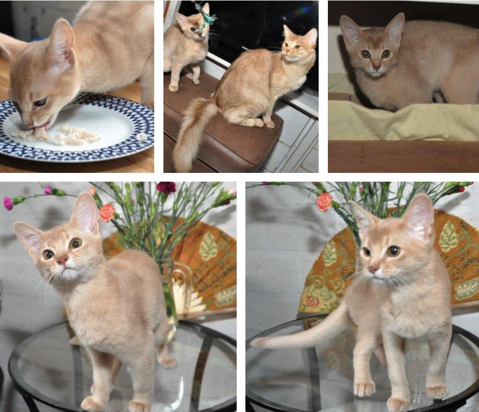 Vorige week zijn Yessie en Yade al verhuisd. Lekker dichtbij, bij Germa en Remco én Cinnamon in Haarlem. Ze doen het uitstekend, op een ongelukje na. Yessie was even in de war op het gebied van de hygiëne… Oeps! En het stel heeft nog niet door dat de grote lieve Cinnamon de ideale knuffel- en speeloom is voor kittens: ze blazen naar hem. Dat deden ze hier trouwens ook wel eens naar Polly. Alleen Polly heeft er geen hartzeer van, Cinnamon wel. Cinnamon is een prachtige sorrelzilveren kater. Hij is ook nog familie want hij is een halfbroer van onze Jack en hun voorouder.
