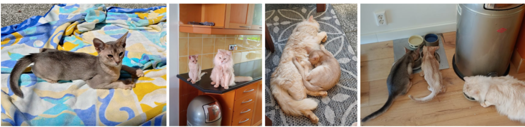 Het gaat heel erg goed met ze. De omgang met de honden is stap voor stap opgebouwd om te voorkomen dat Wiesje in de bescherming zou schieten. Wij hebben totaal geen ervaring met het herplaatsen van een moederpoes met haar kind. Bij cattery’s is dit helemaal niet ongebruikelijk maar bij ons is het nooit de bedoeling geweest dat we een volwassen dier herplaatsen. Voor ons het het heel verdrietig dat we dit schattige diertje moeten gaan missen maar voor Monique en Matthijs is dit juist een buitenkans om zo’n innig stelletje te mogen hebben. Naarmate de katjes zich meer thuis gaan voelen, Wiesje is nog wel wat onwennig, zal het bij ons ook beter gaan voelen.