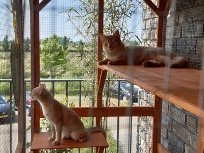 Inmiddels wonen Wiesje en haar dochter Yfke in Houten. Wat was hun bedje daar gespreid! Er was hard geklust om het stel alle comfort te bieden. Van een klimboom die staat als een huis tot een schattig buitenrennetje compleet met grasmatje op het terras. Inmiddels is er zelfs een professionele hordeur geplaatst zodat de schuifdeuren naar het terras bij hun woonkamer op de eerste verdieping bij lekker weer veilig open kunnen staan.