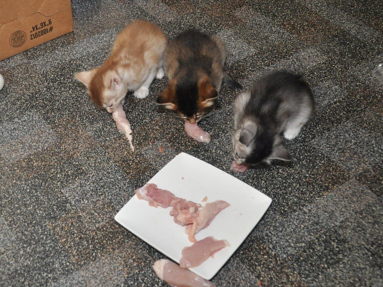 Hun ontwikkeling verloopt zo snel. Tegen de tijd dat ik mijn vorige blog over de kittens klaar had, moest ik hun laatste score op de weegschaal al bij stellen; nu zijn ze allemaal al zelfs over de 600 gram heen. Ik zal ze morgenochtend weer even op de weegschaal zetten en ik ben benieuwd. Ze eten al zo goed. Zelfs repen rauw vlees!